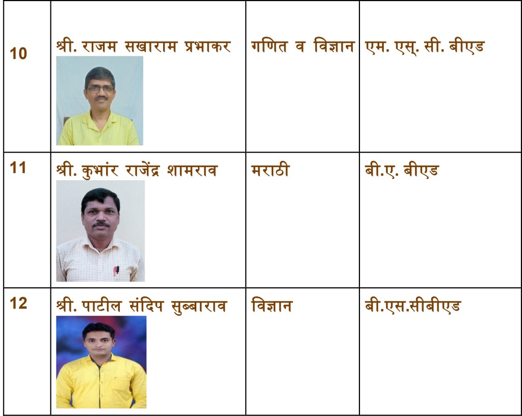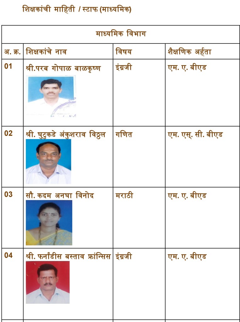 शिक्षकांची / स्टाफ ची माहिती