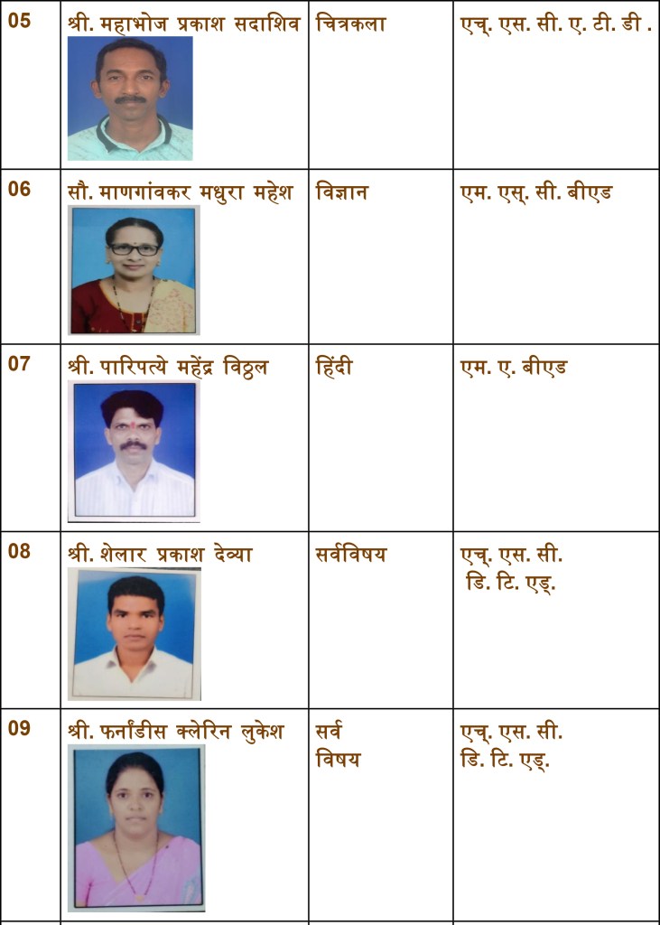 | 4 | श्री. पांडुरंग काशिराम आचेरकर | शिपाई |